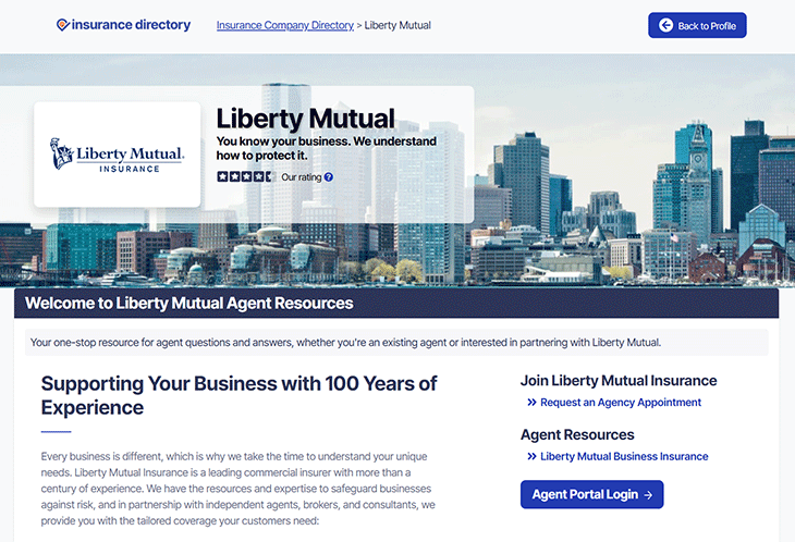 Insurance companies who actively participate in our partner program have made a commitment to support independent insurance agents in various and substantial ways. This includes providing a complete and accurate profile in our directory.