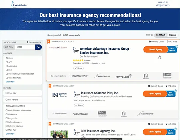 - Insurance shoppers complete our Find a Recommended Agent referral funnel or come through verified partner sources