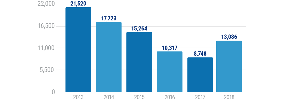As you can see, distracted driving law violations have steadily declined as drivers have adjusted to the change in behavior. The spike in 2018 was due to new, tougher laws that were enacted in October 2017.