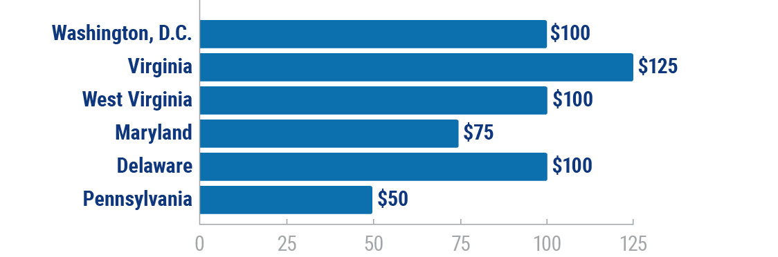 Washington, D.C.'s fines for distracted driving compared to surrounding states