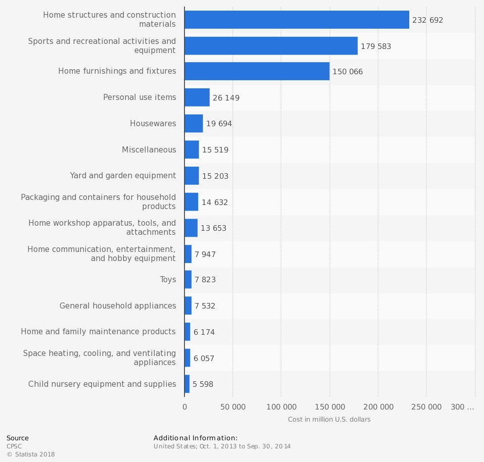 Cost of injuries associated with the use of consumer products in the United States in fiscal year 2014, by product type (in million US dollars)