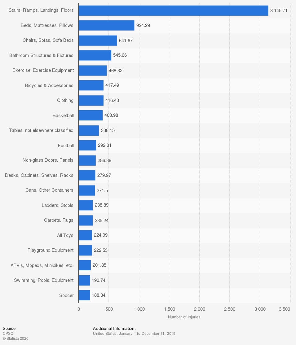 Most dangerous consumer products in the US in 2019, by number of associated injuries (in thousands)