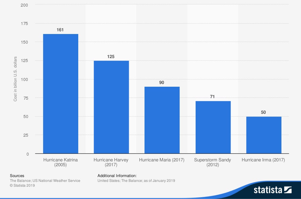 Most Expensive Natural Disasters in the United States as of January 2019 (in billion US dollars)